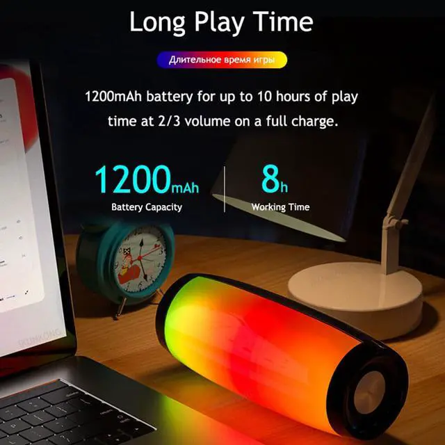 Built-in high-capacity battery of 1200mah portable wireless speaker supports long time music playback (determined by the volume of the playing speaker and audio content). 10w high quality Bluetooth speaker with dsp to add energy to music Unimaginable compact body that perceives dull sound. You can feel relaxed and low level in remote places.