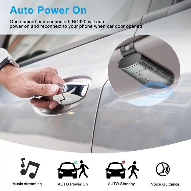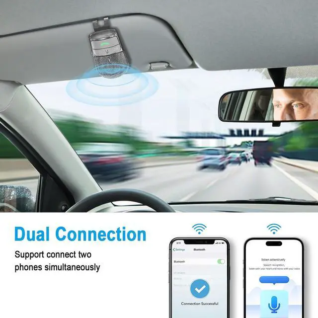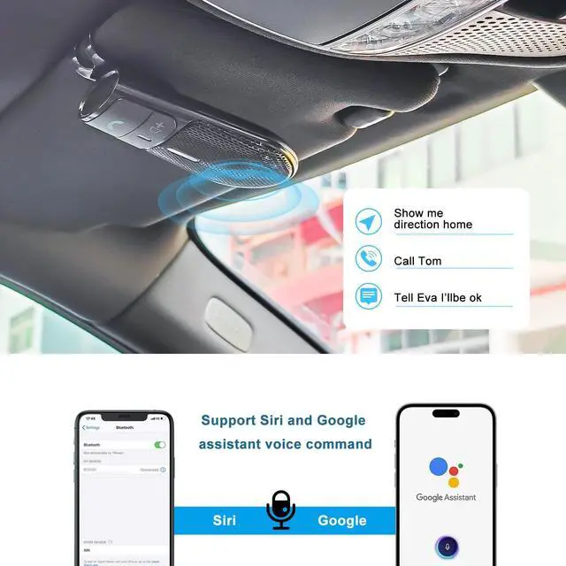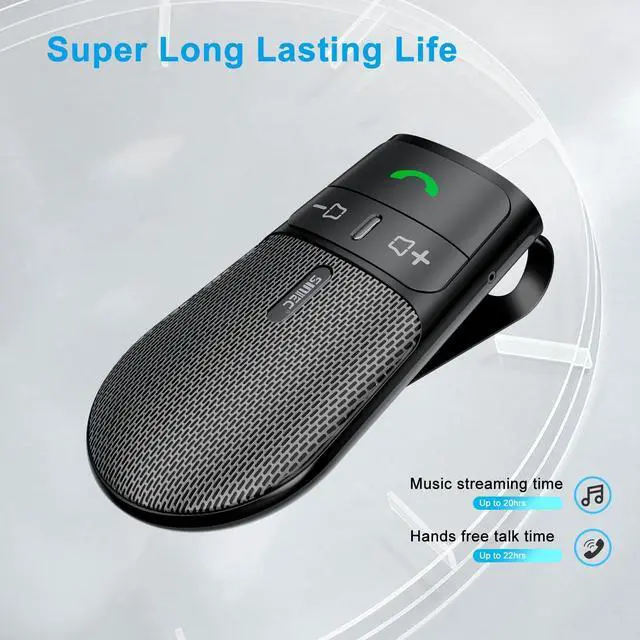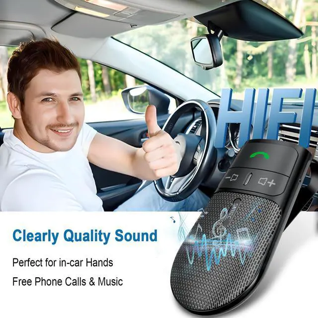 Sunitec Hands-free Bluetooth Car Speaker: Handsfree Wireless Speaker Kit for Cell Phone in Car - Support Auto Power On Siri Google Voice Assistant with Mic Compatible with Android iPhone Samsung