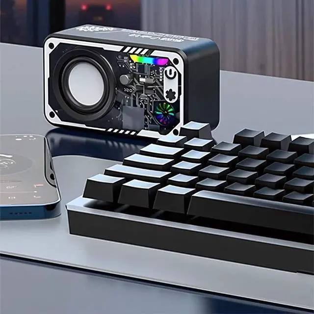 Experience cutting-edge audio with this lightweight transparent Bluetooth speaker featuring vibrant LED lights, high-quality sound, and versatile connectivity. Enjoy powerful music on the go with Type-C charging and a micro SD card slot. Its portable design and see-through aesthetic make it perfect for any setting, bringing advanced technology to your favorite tracks. Compatible with Universal Cell Phone And Bluetooth Device.