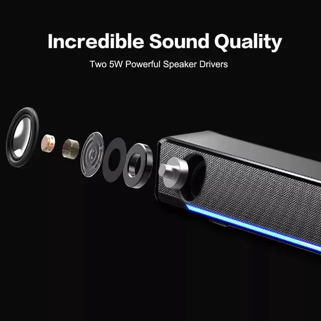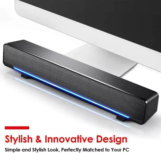 Easy to Use: Computer speaker is USB powered, The sound bar speaker is easy to instal, simply connect the USB and 3.5 mm jack to your computer and you can start using it.