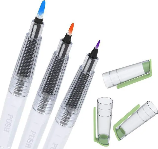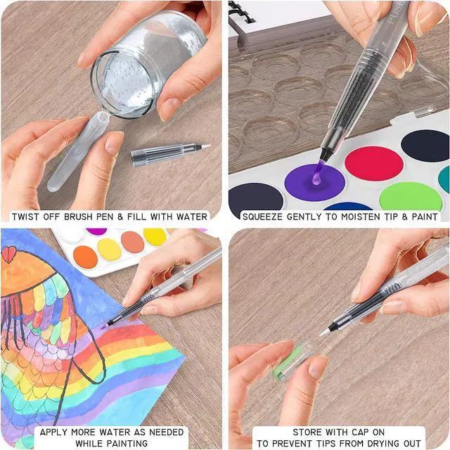 WATERCOLOR BRUSH PENS: Unlike regular paint brushes, you can store water inside of these. Water brushes make watercolour painting much easier by allowing you to have more control over the flow of water and paint. Come in 3 different sizes, perfect for fine detail or broad stroke painting. Portable & self cleaning.