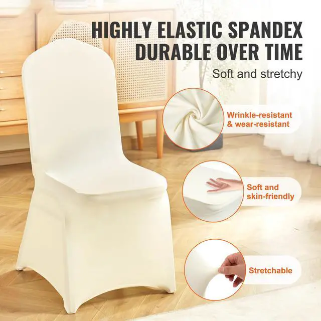 Stretch Spandex Folding Chair Covers, Universal Fitted Chair Cover, Removable Washable Protective Slipcovers, for Wedding, Holiday, Banquet, Party, Celebration, Dining (100PCS Beige)