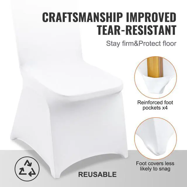 Stretch Spandex Folding Chair Covers, Universal Fitted Chair Cover, Removable Washable Protective Slipcovers, for Wedding, Holiday, Banquet, Party, Celebration, Dining (150PCS White)
