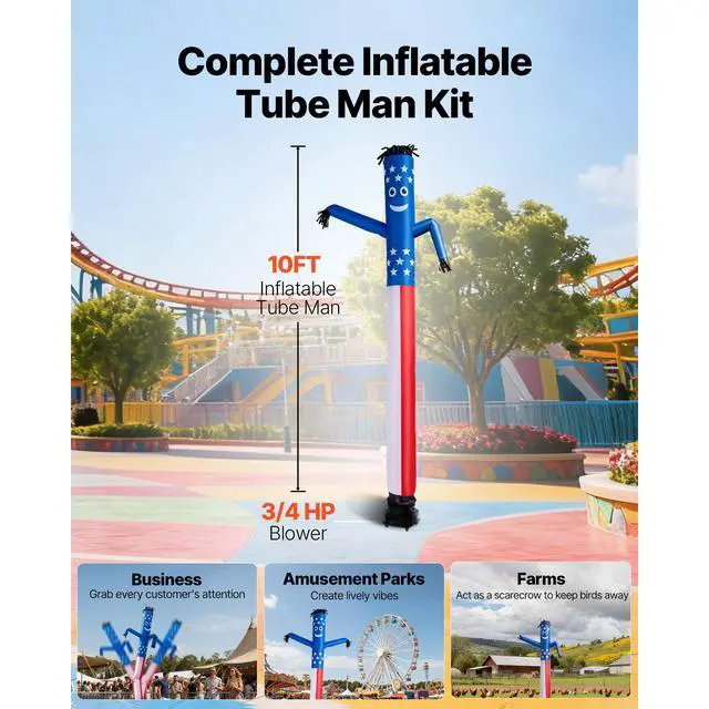 Inflatable Tube Man with Blower, 10 ft Tall, Wacky Waving Wind Flying Inflatable Dancing Tube Guy with 3/4 HP IPX3 Waterproof Blower Fan, for Outdoor Advertising Business Store Party Decoration