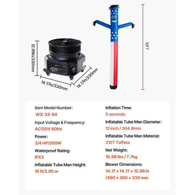 • Inflatable Tube Man Diameter: 12 in/304.8 mm