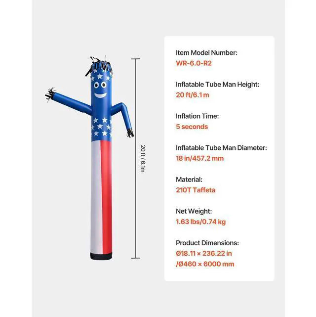 Inflatable Tube Man Height: 20 ft/ 6.1 m