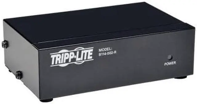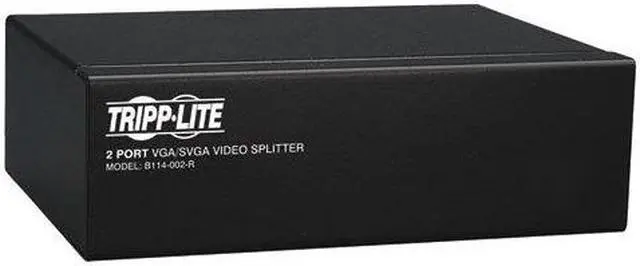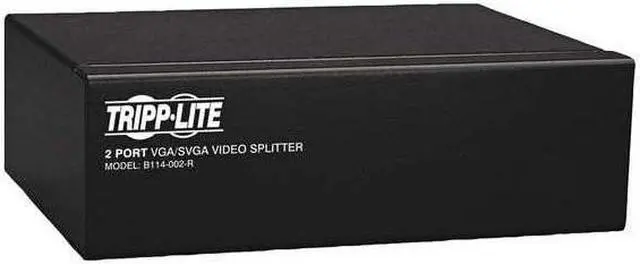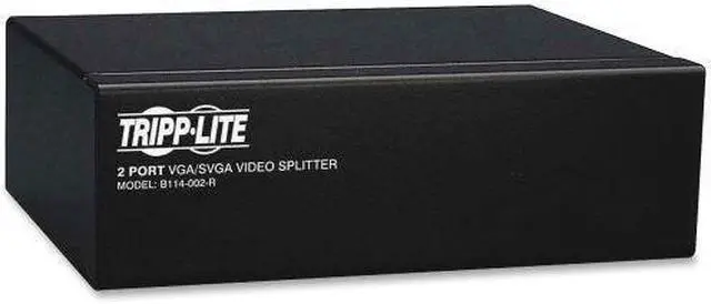 Two-port, VGA/SVGA video splitter with signal booster technology provides bandwidth support at 350MHz to let you simultaneously display video on two monitors at once. A built-in booster allows a video signal (up to 2048 x 1536 at 60Hz) to be transmitted up to 210' from the source. Two standard HD15 female ports are used to connect the monitors while the third HD15 male port is used to connect your CPU. The splitter can be located up to 25' from the connected computer and up to 185' from the connected monitors. The number of connected monitors can be expanded by cascading up to three levels of additional splitters together. Video splitter is designed for use with computers with a HD15 port.