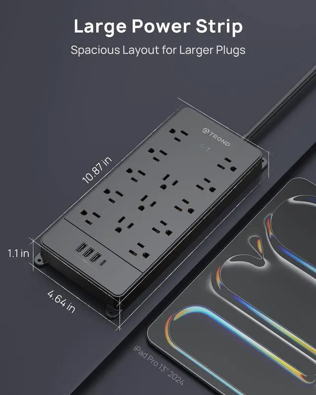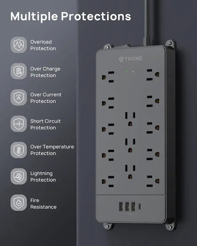 Power strip surge protector provides 4000 Joules surge protection for your expensive devices such as TV, computer, projector, printer, etc. Great for peace of mind.