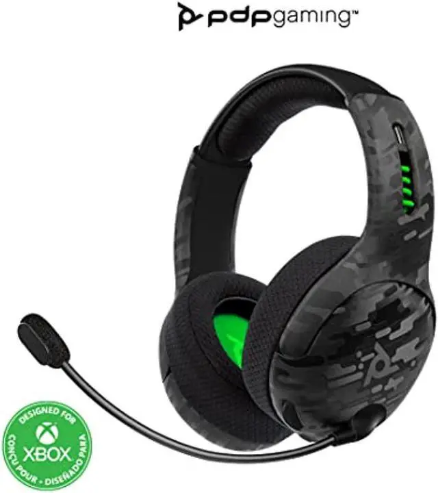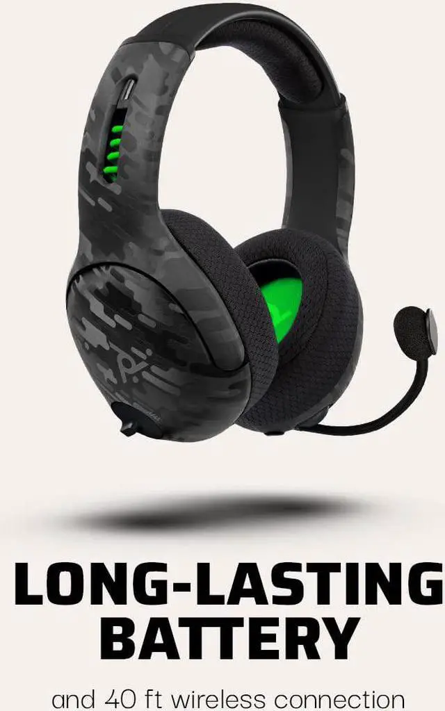Play at the top of your game with the unbeatable comfort, long-lasting battery life, and powerful balanced sound of the PDP Gaming LVL50 Wireless Stereo Gaming Headset for Xbox Series X|S and Xbox One. Go stealth with the Black Camo edition!