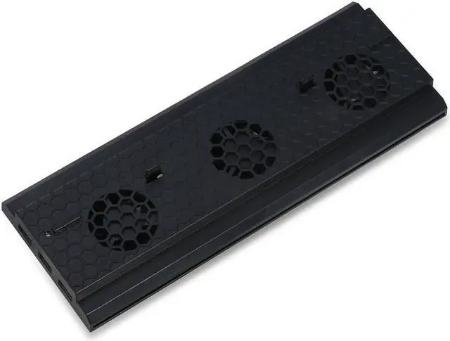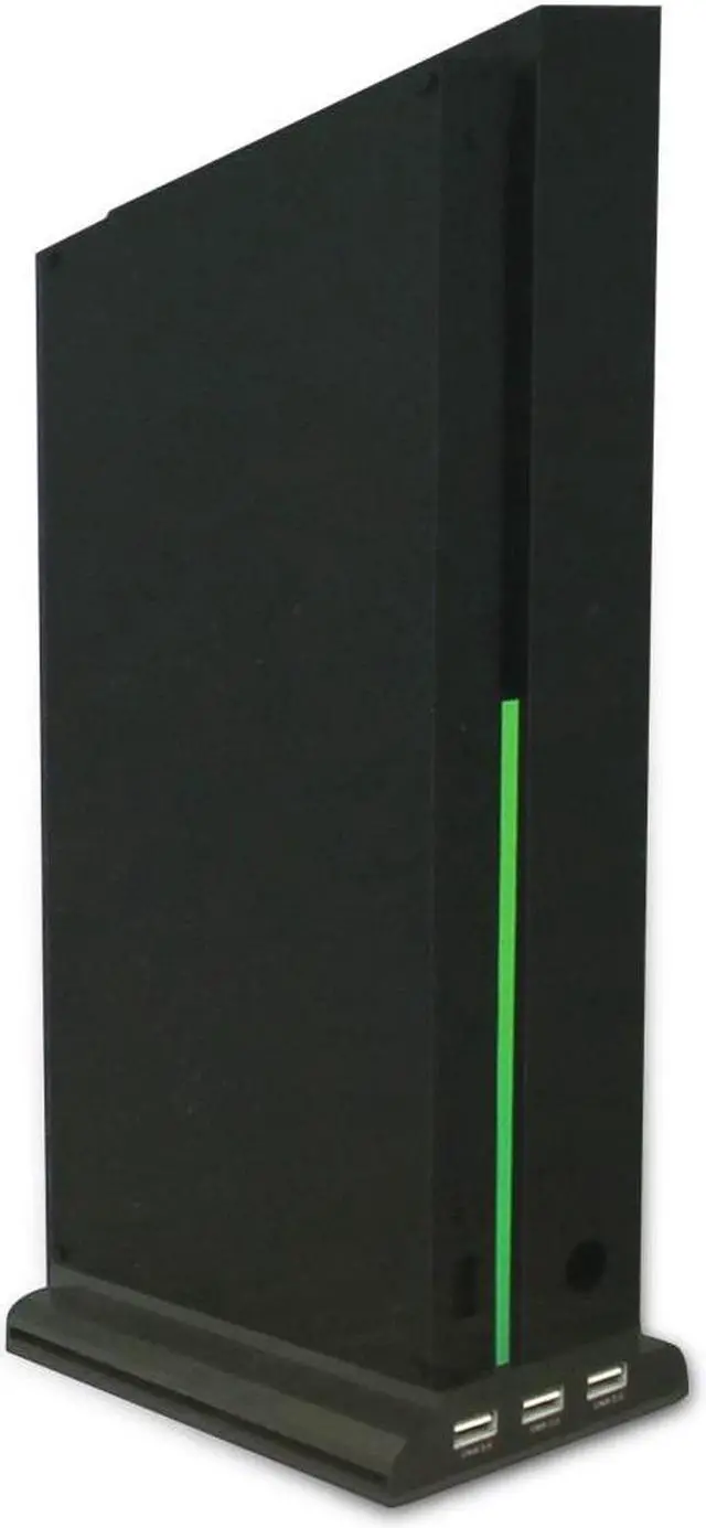 *All-in-one: vertical stand + cooler + 3 USB hubs +1 charging cable (9 feet) *Built-in 3pcs high-speed fans: keep your Xbox One X cool and calm with the vertical cooling stand which also makes the Xbox One X console cooling easily and prolonging its lifetime; no need to worry about your device overheating and burning your table from long hours of game play *3 extra USB hub ports allows you not only to save your game in data storage, but also charge your handset or electronics while enjoying your game *Space saving and easy installation (not compatible with regular Xbox One model, only for Xbox One X console); not includes rechargeable packs *1 charging cable, saving your time when need to charge the controllers; can be connected directly to the controller (no battery required)