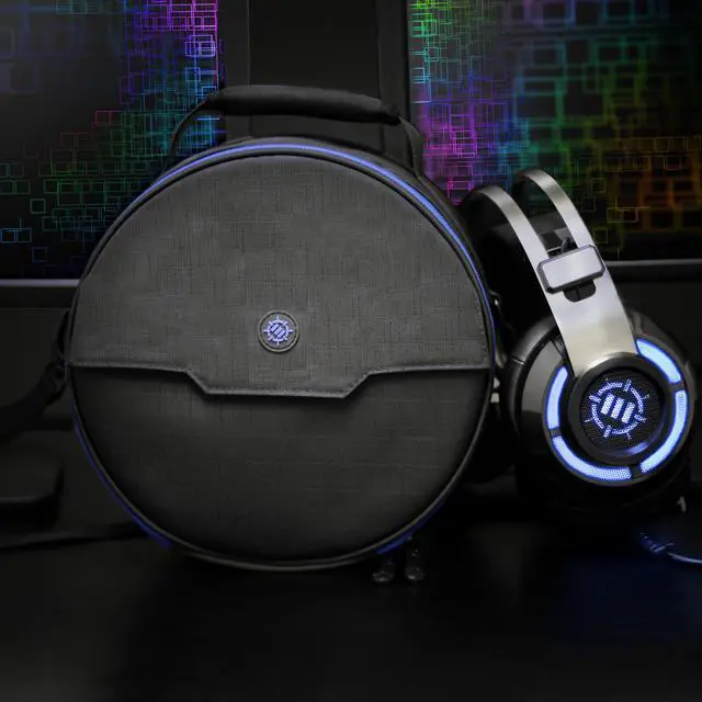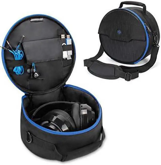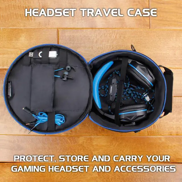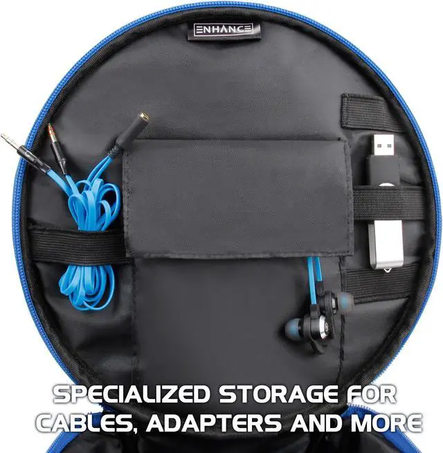 ENHANCE Gaming Headset Carrying CaseProtection and storage unlike any other, ENHANCE offers a practical and stylish headphones travel case that spares no expense. We've designed the headset storage case with 3 principle aspects in mind: Protection, Practicality, and Portability. ProtectionA dual layered interior provides two types of protection. The first layer is a 1/4 inch foam padding that offers impact resistance and a shock absorbing design to provide protection from minor drops, bumps, and more. The second layer is a hard EVA plastic layer that protects your headset and accessories from scratches, deep cuts, and deflects penetrating objects. This dual layer of protection is found all around the case including the sides, front, and back of the case. PracticalityA bi-fold design with a deep pocket fits virtually any headset in a seated position. The interior holding section features a hook-and-loop strap to hold your headphones in position and offers enough room for wired headsets cables to coil and be stored effectively. The cover flap features an organizational section with pockets and elastic bands to hold flash drives, earbuds, wireless adapters, USB cables, and much more! PortabilityThe adjustable and comfort designed shoulder strap accommodates people of all sizes and provides an elegant hands free travel option. Or grab on to the rugged and heavy duty carrying handle to quickly hit the road when you're in a rush.