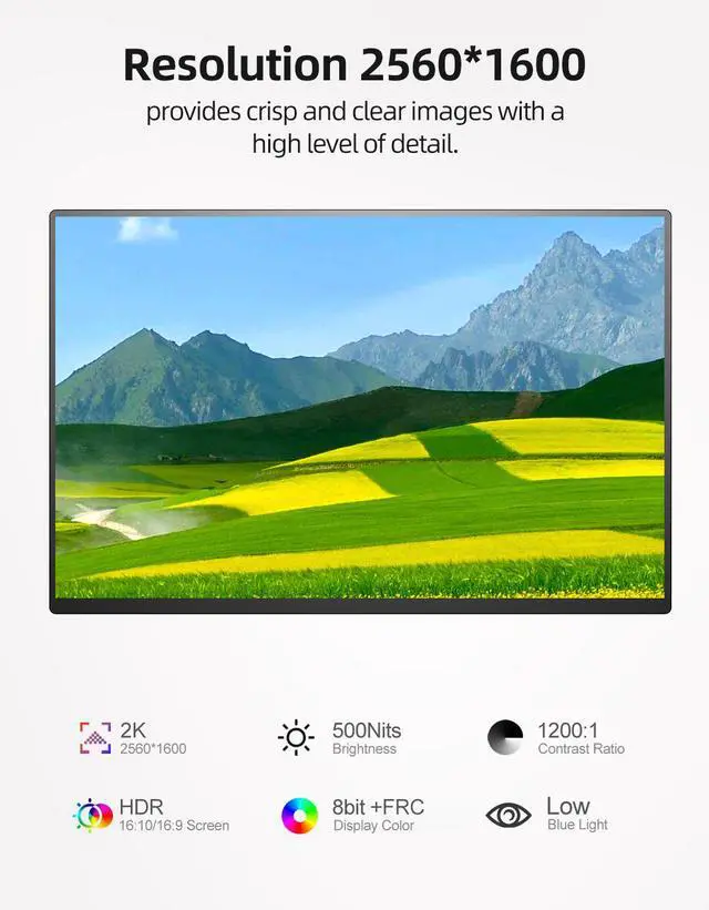 QHD 2.5K Screen & 16:10 Screen Ratio2.5K screen as a Quad-High Definition Screen(QHD Screen) is more exquisite and realistic than 1080P. It can also show more content than 1080P does. If you want a better portable screen rather than a normal one, you