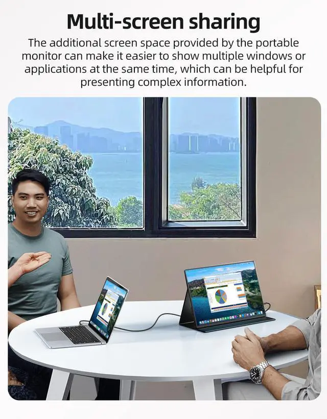 also good for project presentations outside at a coffee shop or other. If you travel a lot, take this monitor with you and enjoy the convenient and large screen. It can boost your productivity by owning a second screen.