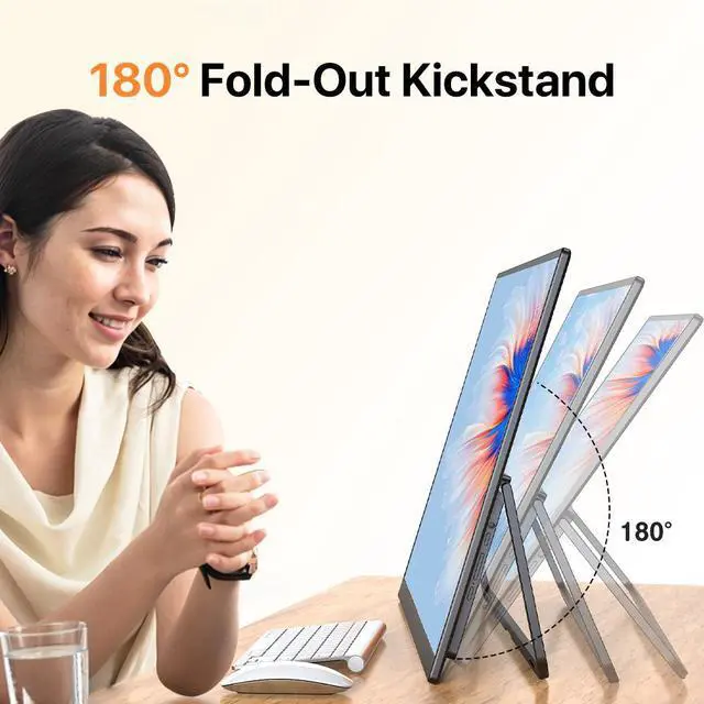 0°-180° Adjustable Stand and VESA Compatibility: Using a portable monitor with stand, can customize your viewing angle with the adjustable stand, allowing for a comfortable setup whether you're working or watching videos.