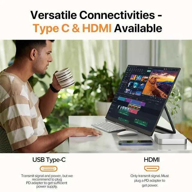 HDMI and Type C Plug and Play: Effortlessly connect to your devices with versatile standard HDMI and Type C ports. The plug-and-play functionality ensures quick and hassle-free setup, so you can start working or gaming in seconds with UPERECT portable external monitor.