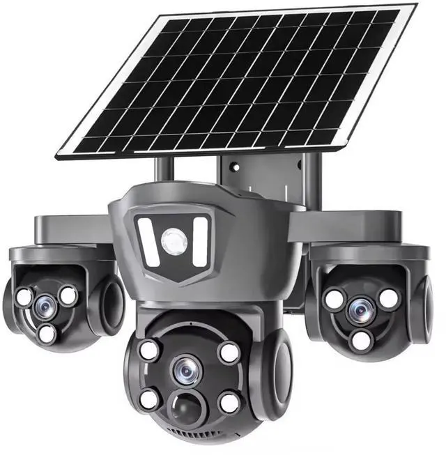 Monitor three areas simultaneously with this 4G Solar Triple-Lens Security Camera. Featuring 9MP ultra HD triple-screen video, 4G cellular connectivity, and solar power, this wireless outdoor camera delivers comprehensive surveillance for remote properties.