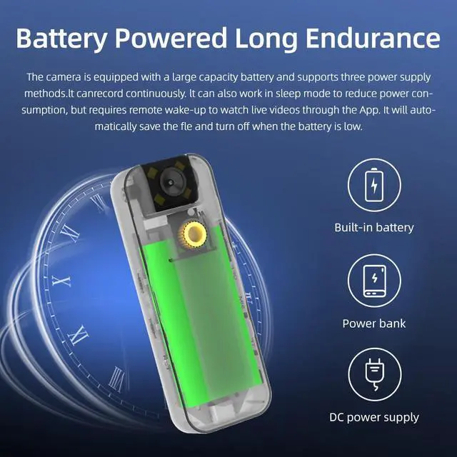 Battery Powered & Low Power: Rechargeable battery for cord-free operation; low power consumption design for extended recording time.