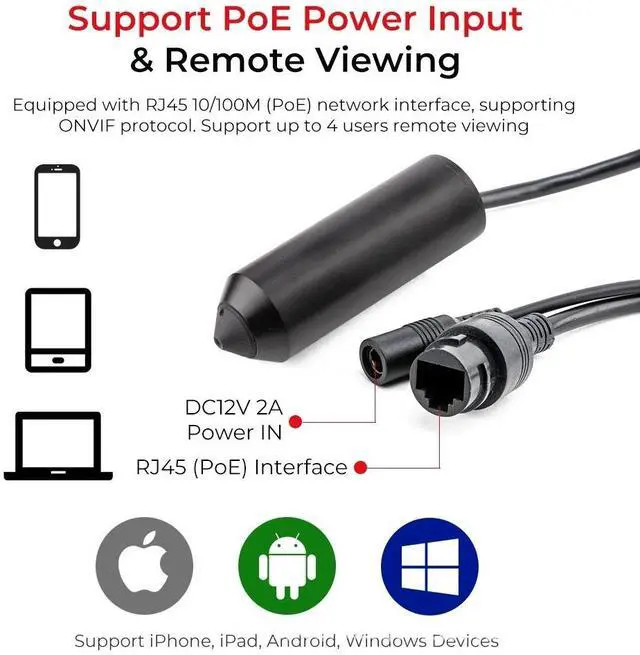 Capture high-resolution images with this 5MP HD PoE Network Camera. Featuring penholder design, fixed 3.6mm lens, and metal housing, this camera is ideal for industrial inspection, medical imaging, and specialized indoor surveillance.
