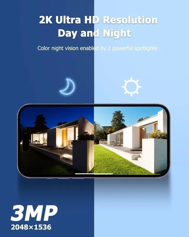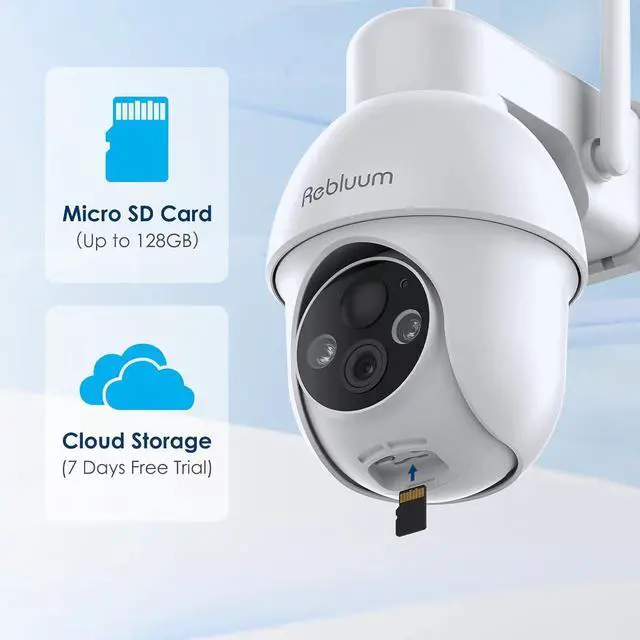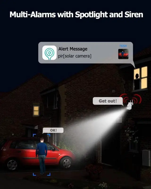 Smart Alarms with Spotlight3 Alarms Mode Optional, Audio Warning/White Light Warning/Audio Warning and Stroble Light, Ward off the Uninvited Visitors and Get Color Image at Night, Playback the Video Clips from Micro SD Card(up to 128GB, Not Included) or Open a Cloud Service to Storage (7 days trail free)