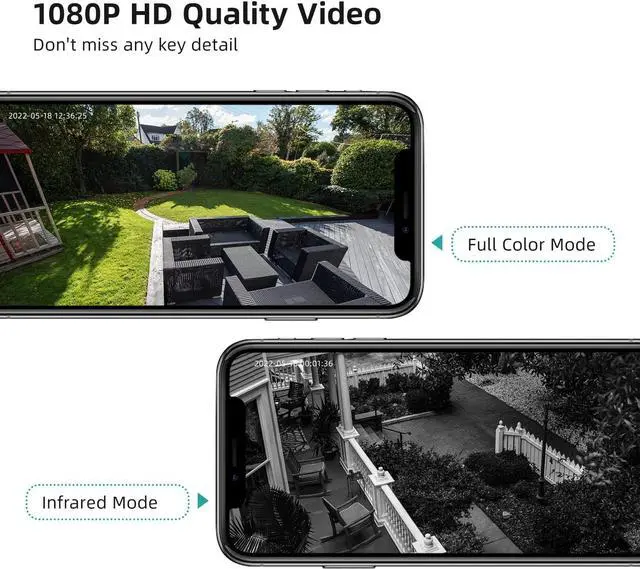 1080P FHD Clear Video and Color Night Vision -- Built in the newest HiSilicon chip and strobe light, DEKCO WiFi camera outdoor provides you with 1080P FHD images and videos and supports color night vision during the day and night. The full-color mode can be set on camera settings, then the camera will trigger a strobe light to take a full-color vision video. Not missing any key points.