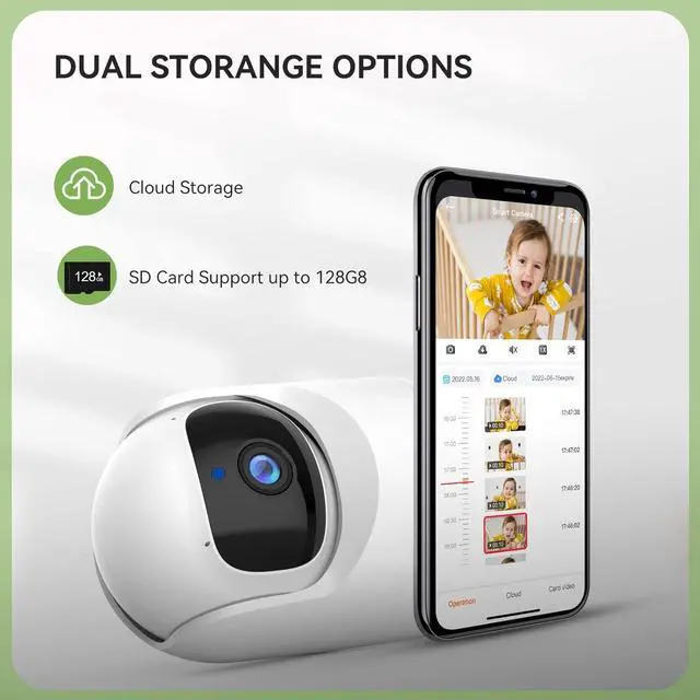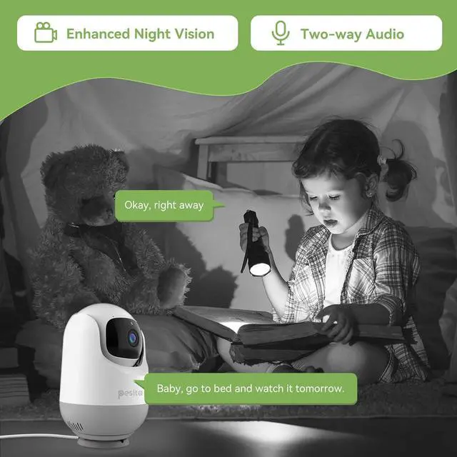 True 1080p HD Live Video & Night Vision&360°ViewBaby Monitor Camera with PT-Watch your home in true 1080P FHD day and night, and see up to 33ft away in the dark. Videos can be viewed anywhere anytime from iOS or Android mobile devices. 360-degree IP Camera Cover every angle with 355° horizontally and 270° vertically. Smart Tracking, When motion is detected, the pan tilt camera will follow its movement automatically to track and record their movements