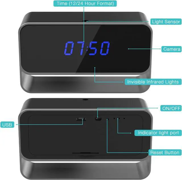 Night VisionThis spy camera for home has 5 high-powered invisible infrared led lights. Compared to similar hidden camera clocks, this nanny camera clock can record clearer videos even in darkness. Nobody can notice this spy camera in the darkness.