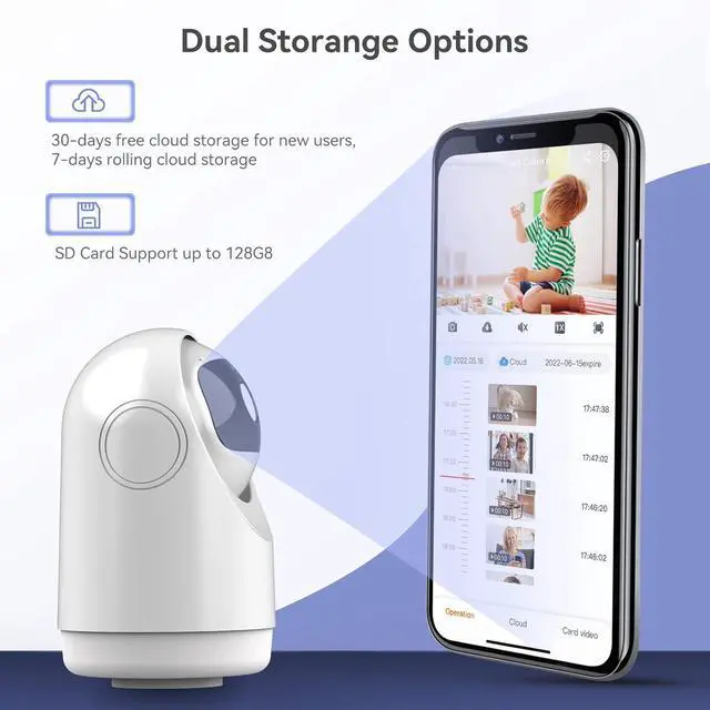 Local Cloud Storage &Share Function&Easy And Quickly Wireless ConnectionThis smart indoor pet camera with phone APP also supports local storage of recording with MicroSD card (not included, up to 128GB). Also share your dog camera unlimited with your family. Easy and quickly wireless connection, You just need to scan the QR code to install it by following the instructions. (Compatible with 2.4GH z WiFi network (Not support 5Ghz WiFi)