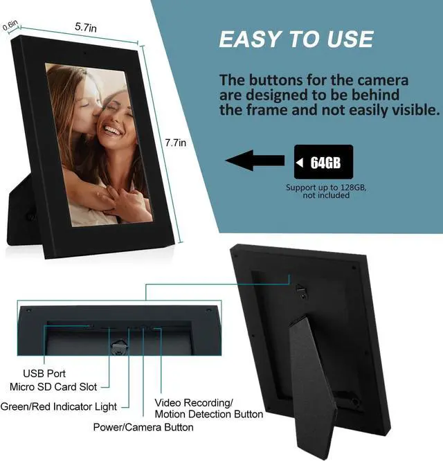 Easy to UseGenerally, cameras with WiFi have to be paired with cell phones and are more complicated and difficult to operate. This is not the case with this frame spy camera, which does not need to be paired with any other product to be used. It is easy to use and simple to operate with one button to switch modes. Not only that, the clarity of the video is also very superior. Under its lens, you will not miss any evidence and details.