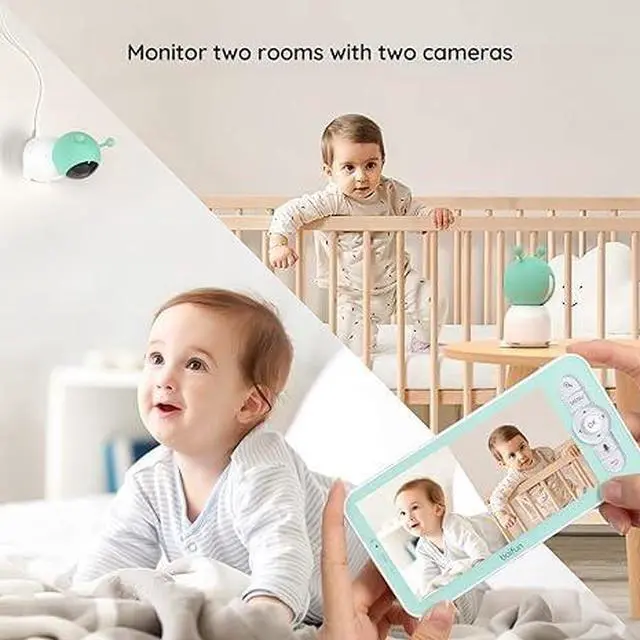 2K WiFi Baby Monitor with Camera and Audio,Smartphone APP, Colorful Night Light, Smart AI Motion & Sound & Humidity & Temperature Detection, Auto Tracking,5-Inch Monitor Control, Night Vision