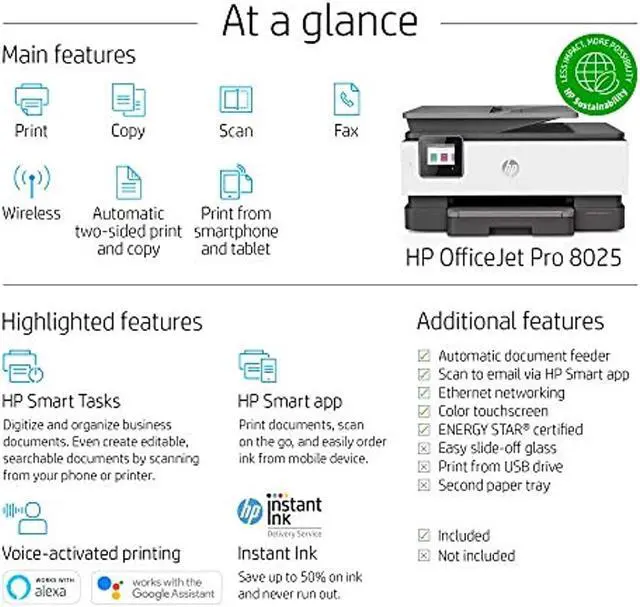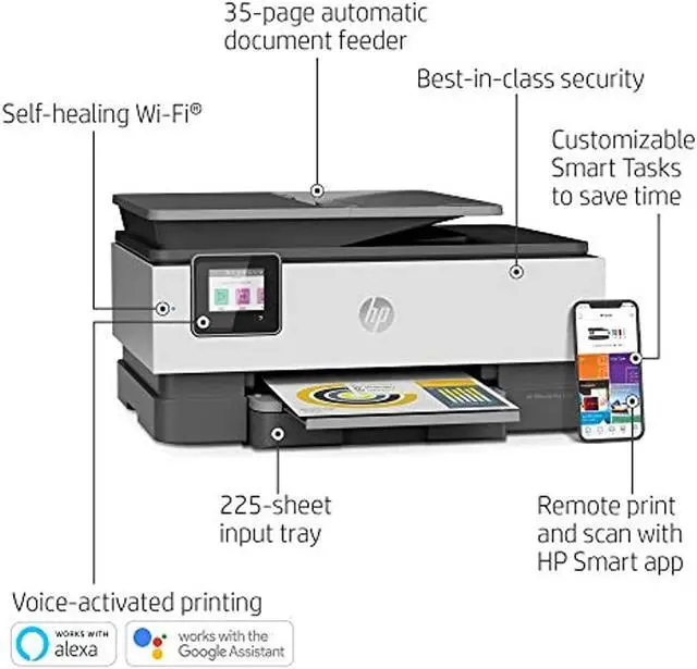 About this item by entering your model number. ^^ Upgrade your office– Replacing the HP OfficeJet Pro 6968, this home office printer offers faster printing at 20 pages per minute, includes fast color copy, scan, and fax for increased productivity, and is 14% smaller ^^ Organize documents 50% faster – Eliminate steps in repetitive tasks and sync to QuickBooks, Google Drive, and more using Smart Tasks—the easiest way to digitize and organize receipts and business documents on your phone ^^ Genuine HP 910 ink delivered to your home: get your first 2 months free when you enroll in HP Instant Ink (optional) during printer set up; plans starting at $ 0.99 per month after the trial period, shipping and recycling included ^^ Print remotely using
