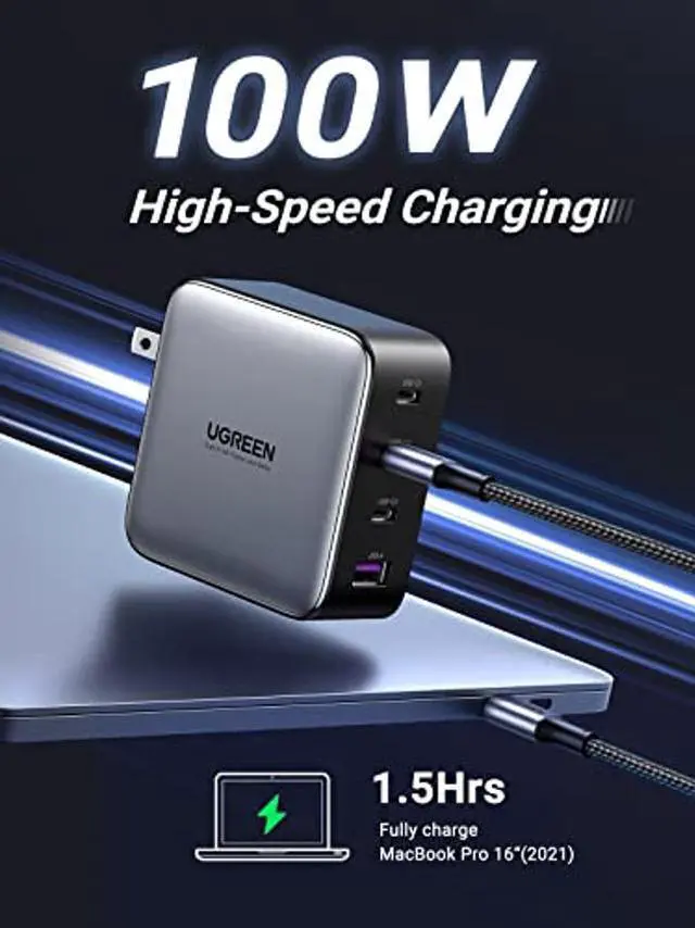 Wide Compatibility: The UGREEN 100W charger provides fast charging to virtually all USB-A and USB-C phones, tablets, laptops, and more, including the MacBook Pro, MacBook Air