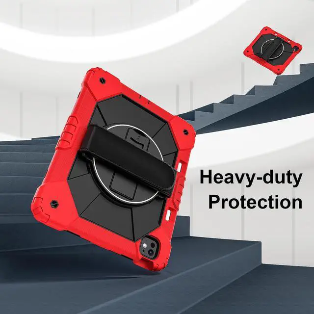 WERLEO Case for iPad Pro 13 inch M5 2025 M4 2024 with Rotating Stand Pencil Holder Hand/Shoulder Strap, Heavy Duty Shockproof Protective Cover Red