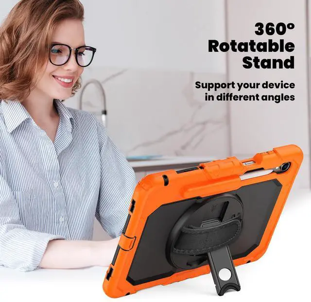 360° Rotating Hand Strap and Stand: The Protective Samsung Galaxy Tab S11 11 inch 2025 Case Built-in 360° Rotatable Hand Strap & Kickstand on the back, flexible in Vertical & Horizontal any other angles ideal for watching video, reading or teaching, maximinzely free your hand. Adjustable Hand Strap perfectly suitable uses for all size of hands, adults, students, child