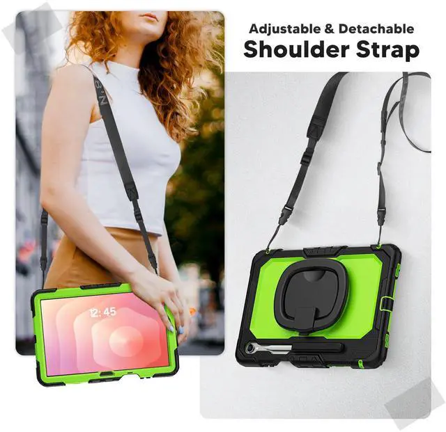 Adjustable Shoulder Strap: The Heavy Duty Samsung Galaxy Tab S11 11 inch 2025 Tablet Case comes with a adjustable detachable shoulder strap, so that you can carry your tablet on neck or shoulder like a bag, or sling it on car head rest. It's ideal for carrying on travel, at work, in school or outdoors
