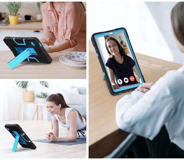 Functional Kickstand: this shockproof tablet case has a built-in sturdy kickstand, you can adjust for optimal viewing and typing positions based on your needs. Hassle free to watch movies, videos or make video calls with other people in a landscape mode, convenient to operate when doing the work, too. Simple and practical for your daily use
