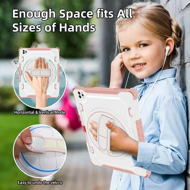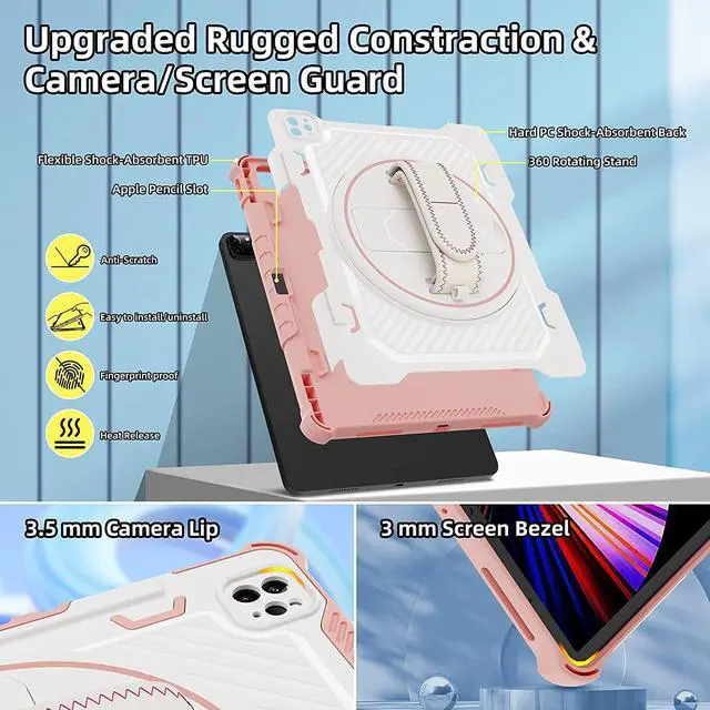 [ 360 Rotating Hand Strap & Stay New ] Adjust rotating hand strap for horizontal or vertical direction fits all size of hands (Small, Medium, Large, Extra-Large),Easy to erase and clean out with wet cloth after using iPad at work or play, our iPad 12.9 newest case always stay new forever. Note: No built in screen protector No pen in the package