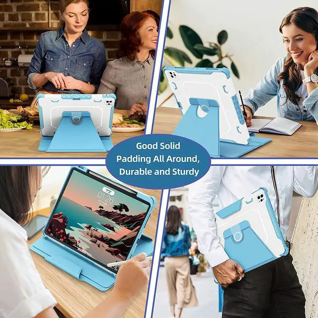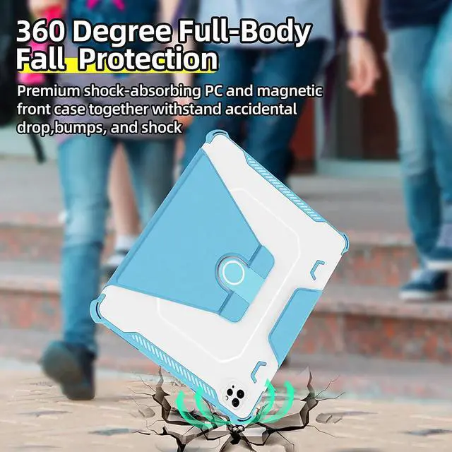 [Lightweight & Durable & Sturdy & Dual Layer Leather Design] Good solid padding case all around your iPad offer 360 Degree Full-Body Fall Protection; shock-absorbing TPU+ Hard PC magnetic front case against accidental drop,bumps, and shock