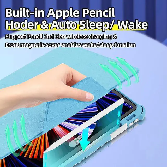 [Built-in Apple Pencil Holder & Auto Sleep/ Wake]Support Apple Pencil 2nd Generation connect tablet for wireless charging (No pen in the package). Front magnetic cover easily enables wake/sleep function