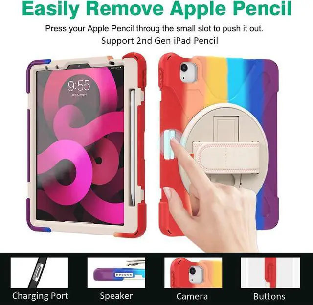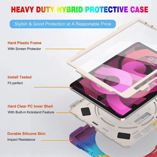 Full Body Protection-With 3 layers design silicone outer frame and 2 pieces Combination of hard reinforced inner shell, this ipad Air 4th generation case is shockproof and help protector your ipad. Perfect for adults and kids