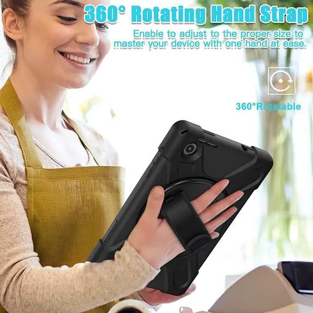 FEATURES: Built-in Kickstand is 360 degree rotating, you can adjust your Lenovo Tab M9 to whatever angle you want, perfect for watching videos and chatting; Adjustable velcor hand strap allows big hand and small hand, perfect for kids and adults. Adjustable and detachable Shoulder belt is very convenience, safe and fashion you can carry your tablet with should belt wherever you want