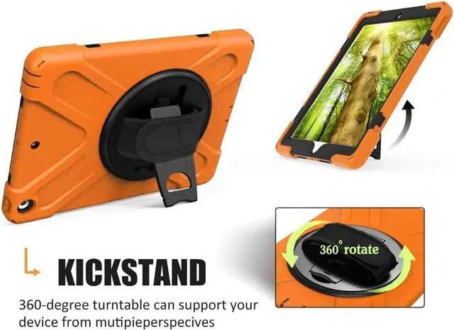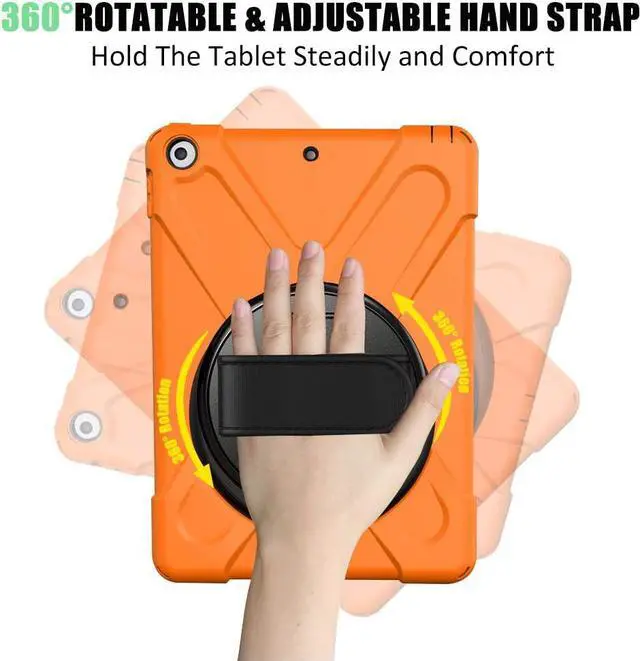 Connected with 360° turntable built-in kickstand, you can adjust your New 10.2 inch iPad to whatever angle you want, Adjustable hand strap allows big hand and small hand, perfect for kids and adults to use iPad 10.2 tablet during work, study or journey Adjustable and detachable Shoulder belt is very convenience, safe and fashion you can carry tablet