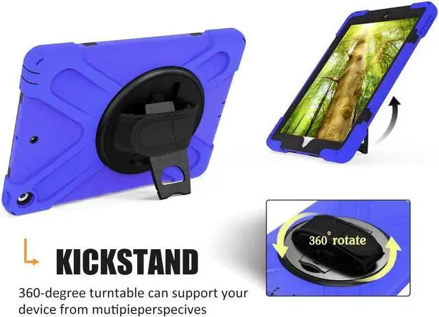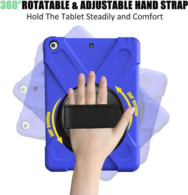 Connected with 360° turntable built-in kickstand, you can adjust your New 10.2 inch iPad to whatever angle you want, Adjustable hand strap allows big hand and small hand, perfect for kids and adults to use iPad 10.2 tablet during work, study or journey Adjustable and detachable Shoulder belt is very convenience, safe and fashion you can carry tablet