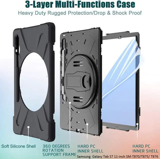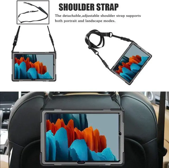 FEATURES--Connected with 360° turntable built-in kickstand, you can adjust your galaxy tab S8 / S7 11 inch tablet, perfect for watching videos and chatting. Adjustable hand strap allows big hand and small hand, perfect for kids and adults Adjustable and detachable Shoulder belt is very convenience and safe. You can carry tab S7 11 inch tablet 2020 with should belt wherever you want High quality screen protector can protect your tablet from fingerprints and scratches during daily use