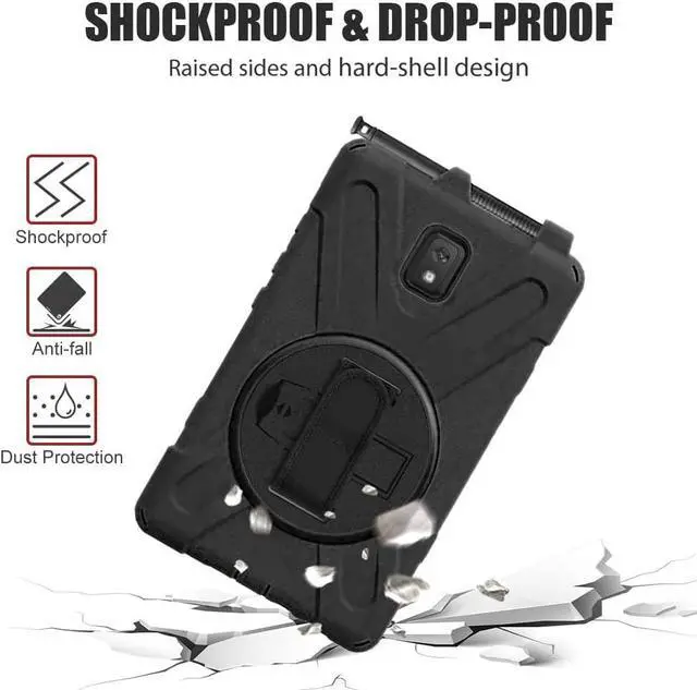 FEATURES--Connected with 360° turntable built-in kickstand, you can adjust your Tab Active 3 tablet for watching videos and chatting. Adjustable hand strap allows big hand and small hand, perfect for kids and adults to use galaxy tab a 8.4 tablet during work, study or journey, ideal for students ,teachers, engineers, cashiers and waiters, etc Adjustable and detachable Shoulder belt is very convenience and safe. You can carry case for Tab Active 3 with should belt wherever you want