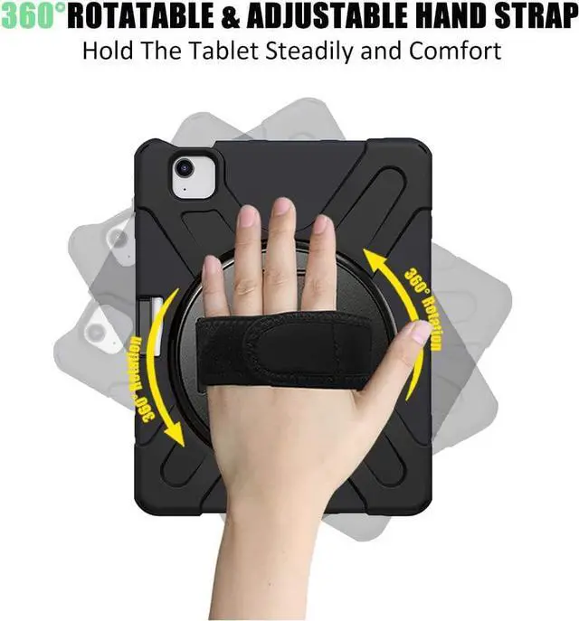FEATURES: Built-in Kickstand is 360 degree rotating, you can adjust your New iPad to whatever angle you want, perfect for watching videos and chatting; Built-in elastic Pencil Holder makes it easy to pull out and store your Apple pencil store your Apple Pencil Adjustable velcor hand strap allows big hand and small hand, perfect for kids and adults. Adjustable and detachable Shoulder belt is very convenience, safe and fashion you can carry tablet with should belt wherever you want