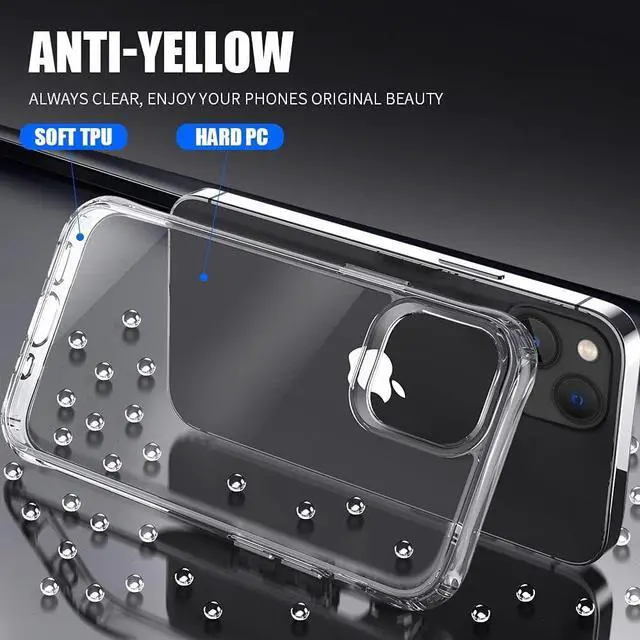 iPhone 13 crystal-clear case with Anti-Yellowing flaunts original iPhone 13 design and beauty, made of high quality materials to ensure the long-lasting clarity and scratch-resistant