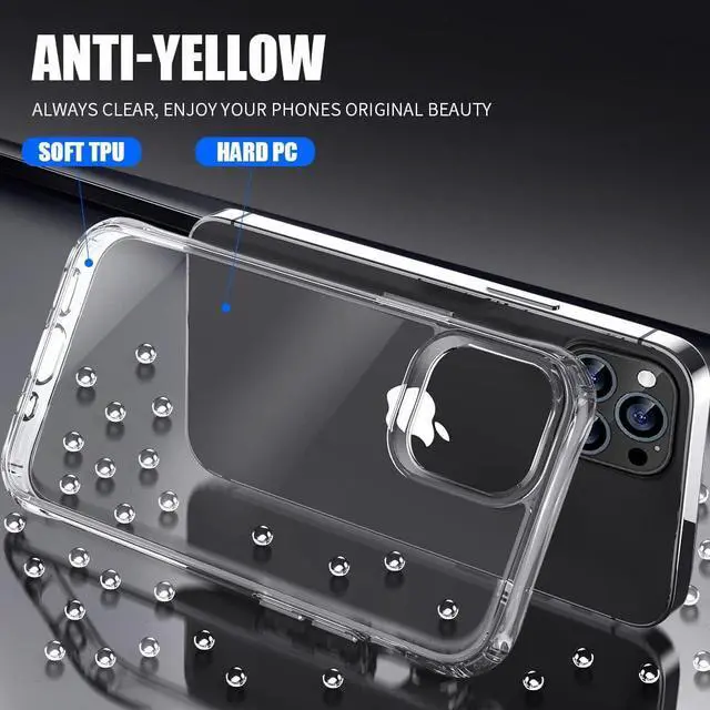 iPhone 13 Pro crystal-clear case with Anti-Yellowing flaunts original iPhone 13 pro design and beauty, made of high quality materials to ensure the long-lasting clarity and scratch-resistant