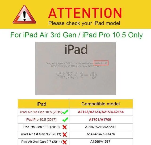 COMPATIBILITY--Specifically designed for iPad Pro 10.5 inches 2017 release A1701/A1709/A1852 / iPad Air 10.5 3rd Generation 2019 release A2123/A2152/A2153/A2154. NOT compatible with any other devices
