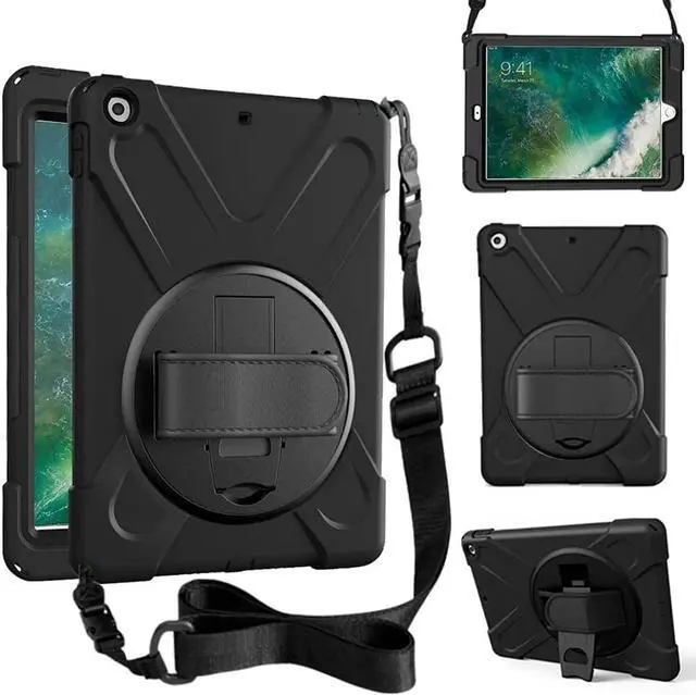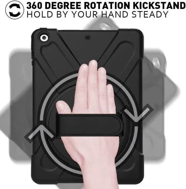 Rugged Case: Built-in Kickstand is 360 degree rotating, you can adjust your New iPad to whatever angle you want, perfect for watching videos and chatting; Built-in Pencil Holder makes it easy to pull out and store your Apple pencil store your Apple Pencil Adjustable velcor hand strap allows big hand and small hand, perfect for kids and adults. Adjustable and detachable Shoulder belt is very convenience, safe and fashion you can carry tablet with should belt wherever you want