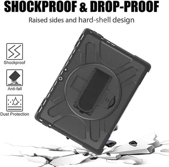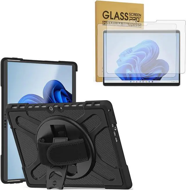 FEATURES--Connected with 360° turntable built-in kickstand, you can adjust your Surface Pro 8 for watching videos and chatting. Adjustable hand strap allows big hand and small hand, perfect for kids and adults Adjustable and detachable Shoulder belt is very convenience and safe. You can carry Surface Pro 8 with should belt wherever you want